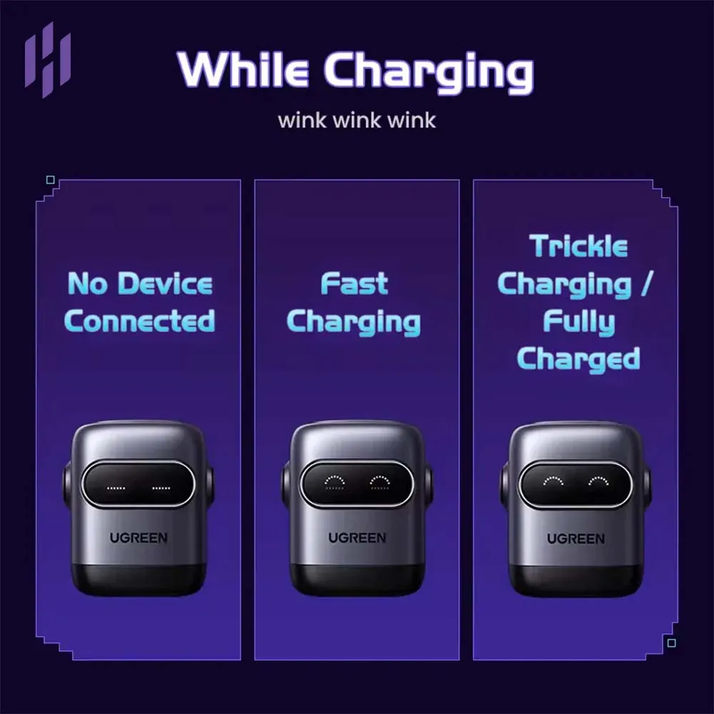 El cargador robot Ugreen UNO X662 QPai revoluciona la carga con su innovadora pantalla LED y 65 W de potencia GaN. Este adorable cargador con forma de robot combina tecnología de vanguardia con un diseño divertido, con expresiones faciales dinámicas que indican el estado de carga. Con tres puertos versátiles y completas funciones de seguridad, es la solución de carga todo en uno perfecta para tus dispositivos.