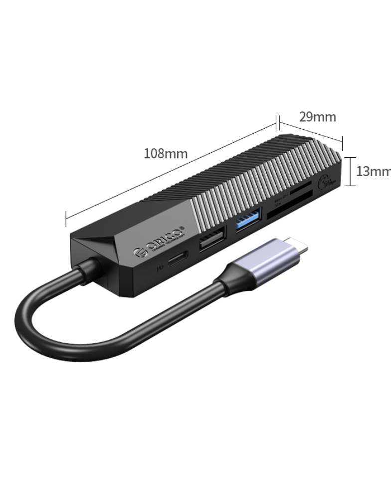 El Hub Type-C 6 en 1 Multifunctional ORICO-MDK-6P es la solución ideal para quienes buscan expandir la conectividad de sus dispositivos. Con un diseño elegante en color negro, este hub ofrece seis puertos USB 3.0, permitiendo la conexión simultánea de múltiples dispositivos, desde discos duros hasta periféricos.