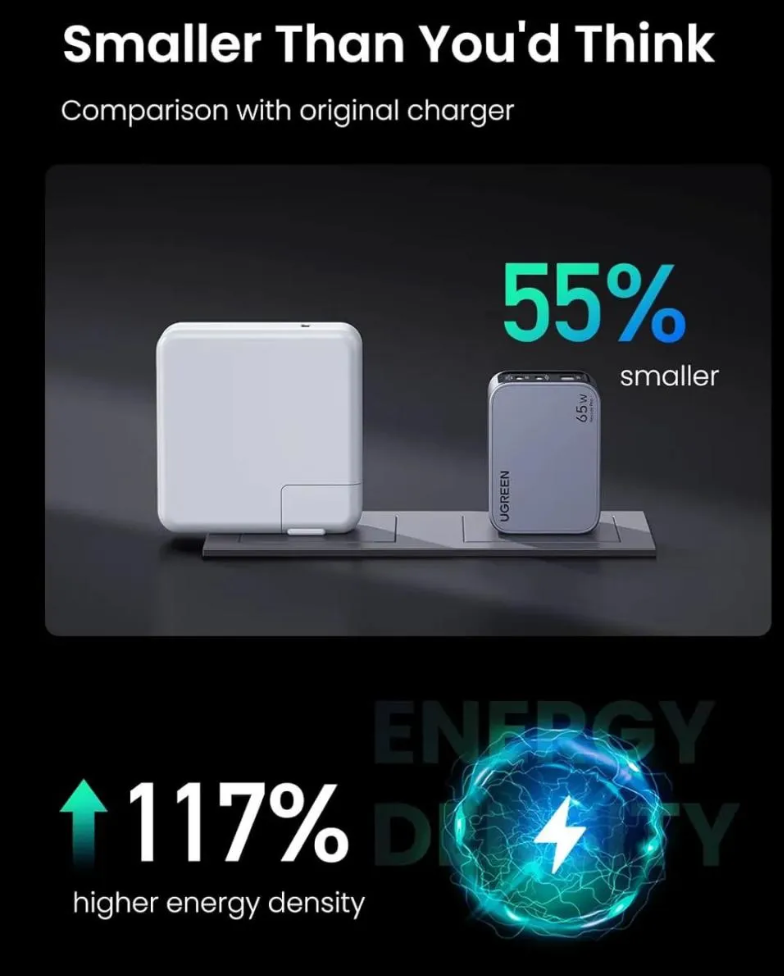 Mini Cargador 65w Nexode Pro 3 Puerto Usb-c/usb Ugreen 25263