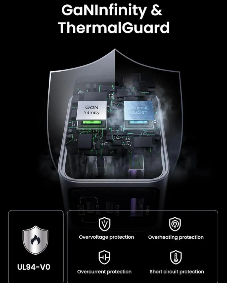 Chip GaNInfinity: La nueva generación de tecnología GaN te ofrece una experiencia de carga más rápida y potente. Eficiencia excepcional con menor generación de calor en un diseño compacto y ligero.