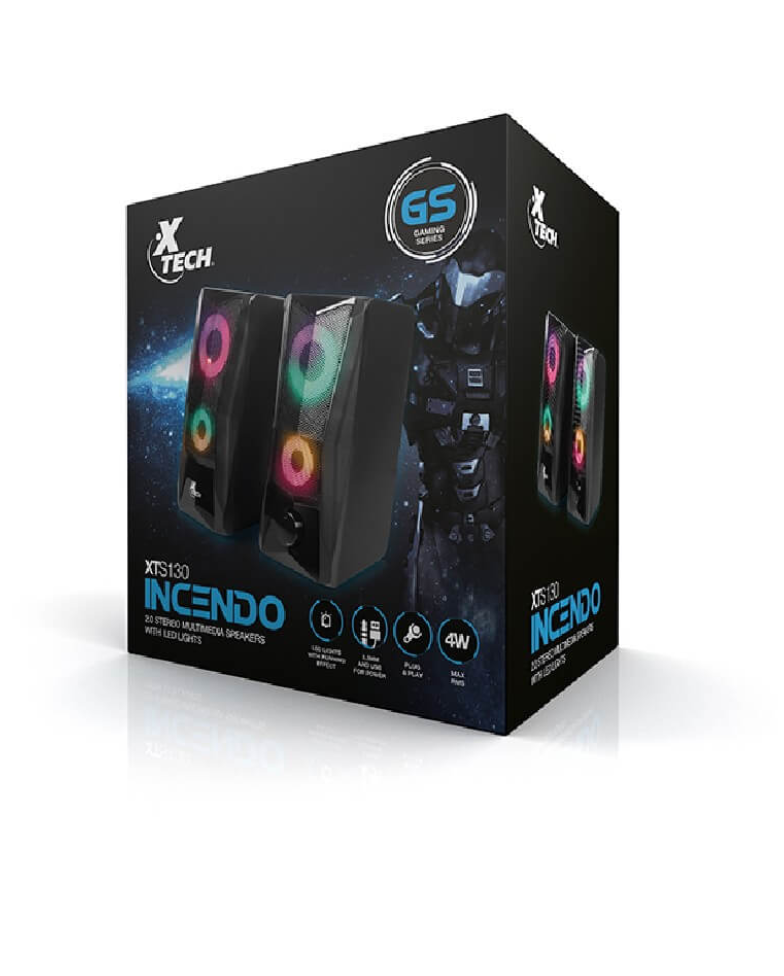 Parlantes Para Pc Xtech Incendo 2.1 Negro 4w Luz Led