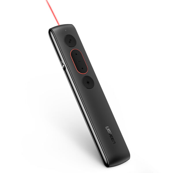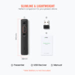 Funciona con una frecuencia de radiofrecuencia de 2,4g, controla de forma inalámbrica distancias de hasta metros, y le permite moverse libremente e interactuar con su público o estudiantes, incluso en las salas más grandes.